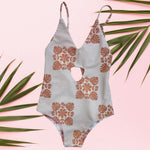 Blush heirloom/Cheetah Hibiscus Peek-a-Boo reversible Swimsuit
