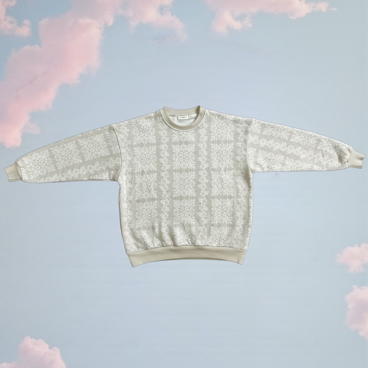 Featuring our subtle tonal tropical-inspired print in soft neutral hues, this piece feels calm, elevated, and endlessly versatile. The relaxed silhouette drapes comfortably while ribbed cuffs, neckline, and waistband create a clean, flattering finish.